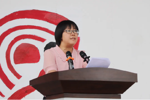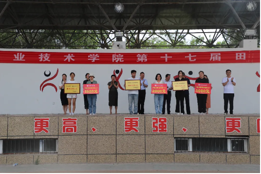 闭幕式上,余冬贞副院长宣布学院第十七届田径运动会比赛成绩。