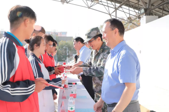 迎着凉爽的秋风,沐浴着和煦的晨光,9月25日上午,开元官网在城建校区和建材校区隆重举行军训会操表演暨总结表彰大会。中国人民解放军69006部队政治教导员曾继涛、中国人民解放军69006部队干事单宝玉,开元官网党委副书记、副院长阳东升,党委委员、副院长石建平,副处级调研员陈为,党委委员、宣传部部长阿不都外力·胡达白尔地参加了大会。大会由党委委员、副院长石建平主持。