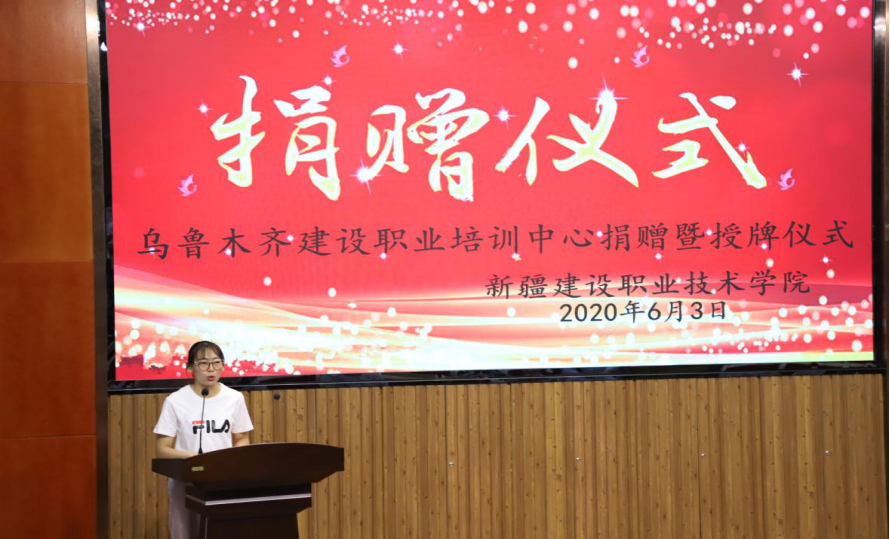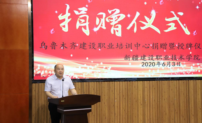 2020年6月3日16:00,乌鲁木齐建设职业培训中心捐赠暨授牌仪式在学院建工校区第三阶梯教室举行。乌鲁木齐建设职业培训中心主任周健、学院中层干部、教职工及学生代表参会。