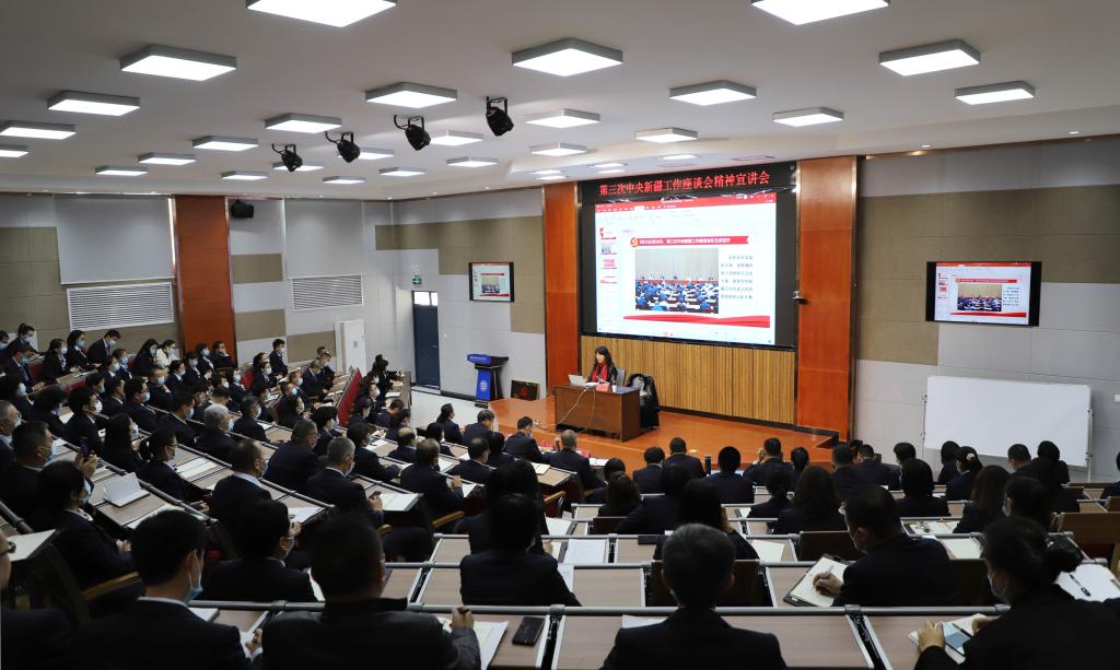 10月20日下午,第三次中央新疆工作座谈会精神宣讲会在开元官网建工校区学术报告厅举行。自治区党委教育工委第三次中央新疆工作座谈会精神宣讲团成员、新疆大学党委副书记孟凡丽教授作宣讲报告。为更好将会议精神传达到全体师生,学院设立1个主会场,22个直播分会场进行宣讲。