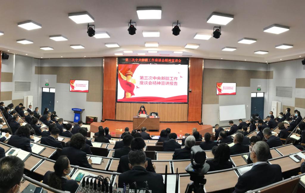 全体师生要以高度的政治自觉、思想自觉和行动自觉全力抓好贯彻落实。在行动上、思想上、政治上能够与党中央保持高度一致,做到精神领会入心入脑进灵魂,在学懂弄通做实上下功夫,在落地落实落到位上见实效。在全院掀起学习贯彻第三次中央新疆工作座谈会精神新高潮,为建设美丽新疆,共圆祖国梦想作出应有贡献!