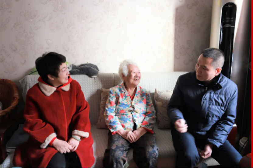 (石建平副院长、陈红处长慰问张树堂遗孀王玉芬同志)