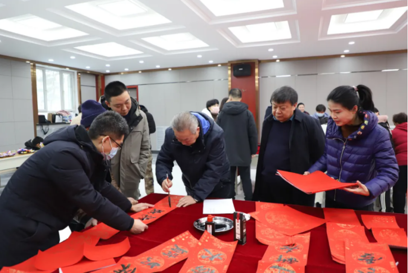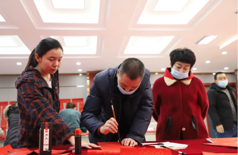 “瑞雪纷飞清玉宇,花虎起舞贺新年”、“ 事事如意大吉祥,家家顺心永安康”、“春归大地人间暖,福降神州喜临门”……一副副春联或清新飘逸,或刚劲有力,现场墨香四溢,洋溢着浓浓的喜庆氛围。