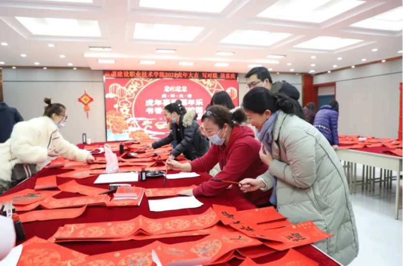 金牛昂首高歌去,玉虎迎春敛福来。本次迎新春写、赠春联活动共送出近一百多副春联和“福”字,这一有温度、有内涵的“文化年货”既是对中华民族优秀传统文化的传承,增强文化自信和文化活力,又将学院党委和学院工会的关怀与祝福送至广大教职工,营造了喜庆祥和的新春节日氛围。
