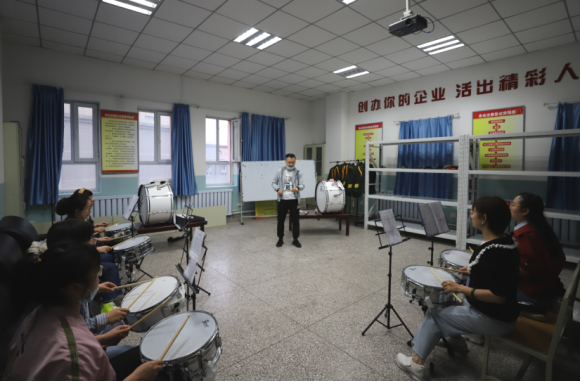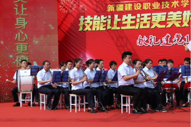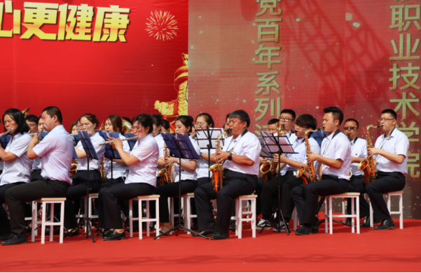 2021年6月22日,职业教育活动周“技能让生活更美好 体美让身心更健康”献礼建党百年系列活动上,管乐团《没有共产党就没有新中国》和《中国中国鲜红的太阳永不落》为庆典拉开帷幕,70余名教师用心演奏出的每一个音符,震撼全场。纪念一二·九运动升国旗仪式上奏响义勇军进行曲,奏响时代强音。
