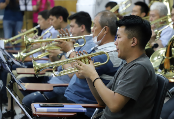2021年5月27日,管乐团第一次集中排练,一曲《没有共产党就没有新中国》在校园上空响起,引来来往师生驻足观看,并赢得阵阵掌声,而这时离大家正式学习管乐还不到一个月。