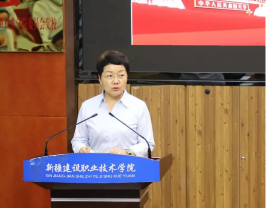 (学院党委委员、副院长马桂珍宣读方案)