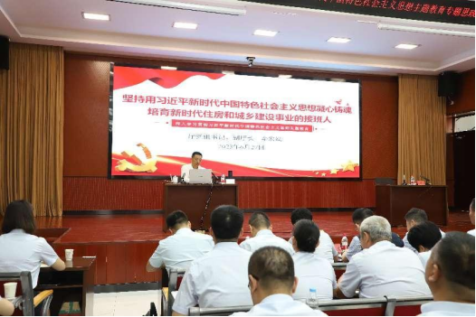 李宏斌书记以《坚持用习近平新时代中国特色社会主义思想凝心铸魂,培育新时代住房和城乡建设事业的接班人》为主题,从深入学习贯彻习近平新时代中国特色社会主义思想,充分开展主题教育的重大意义,全面准确把握目标要求;认真学习领会,准确把握党的二十大的丰富内涵和精神实质,切实把思想和行动统一到党中央决策部署上来;坚持用习近平新时代中国特色社会主义思想凝心铸魂,培育新时代住房和城乡建设事业的接班人三个方面,阐述了要全面学习领会习近平新时代中国特色社会主义思想,全面系统掌握这一思想的基本观点,科学体系,把握好这一思想的世界观方法论,坚持好、运用好贯穿其中的立场观点方法, 不断增进对党的创新理论的政治认同、思想认同、理论认同、情感认同,真正把马克思主义看家本领学到手,自觉用新时代中国特色社会主义思想指导各项工作。