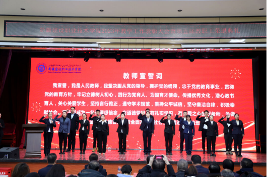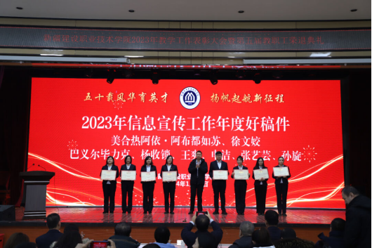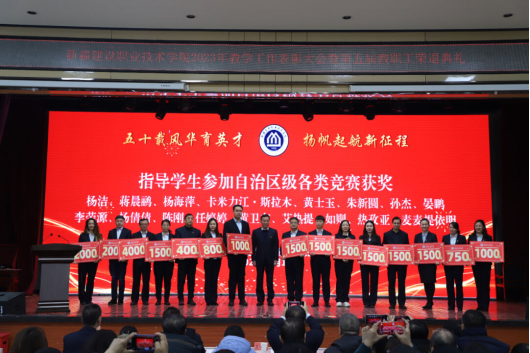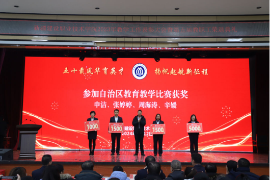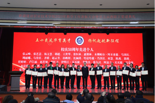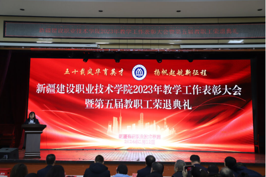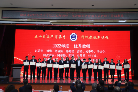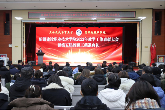五十载风华育英才,扬帆起航新征程。1月12日, 新KY开元集团官网2023年教学工作表彰大会暨第五届教职工荣退典礼在建材校区礼堂隆重举行。回顾总结学院过去一年的教学工作,表彰学院教学工作中涌现出来的先进集体和先进个人,并以最真挚的情谊欢送荣退的老师、同事,切实营造尊师重教的浓厚氛围,进一步弘扬尊师重教的优良传统,以榜样的力量引领学院师德师风建设,激励广大教职工进一步增强工作的责任感和使命感,开拓创新、勇争一流,努力为学院高质量发展作出积极贡献。