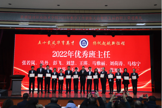 表彰大会共计表彰教职工约300余人次,对学院“优秀教师”“先进工作者”“优秀辅导员”“优秀党员”“先进工会小组、工会积极分子、优秀工会干部”“优秀信息员、年度好稿件作者”“优秀班主任”“校庆先进个人”等教职工进行表彰。正是因为拥有像这样爱校如家、爱生如子、无私奉献、可爱可敬的教师群体,才得以汇集学院高质量发展的奋进之力,他们是过去一年在学院事业发展中的优秀代表,他们立德树人,潜心教学,以身治教,用实际行动传承着建院的精神传统,用辛勤耕耘续写着教书育人的动人篇章。