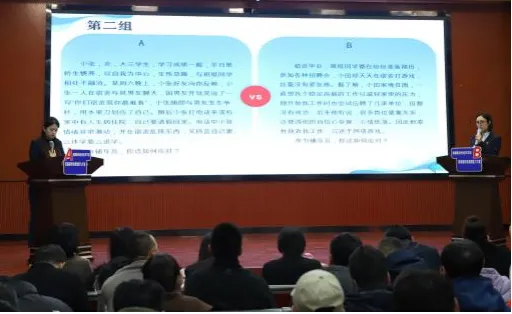 案例研讨环节,选手通过抽签的形式两两分组,以“我提问,你回答”的方式进行,辅导员围绕九大工作职责的典型案例,展开分析和研讨,系统考察辅导员的理论储备及运用理论发现问题、分析问题、解决问题的综合能力。