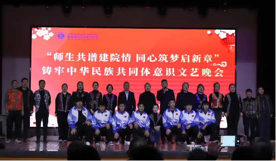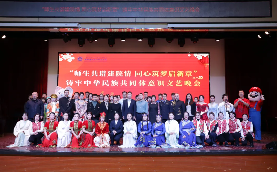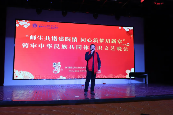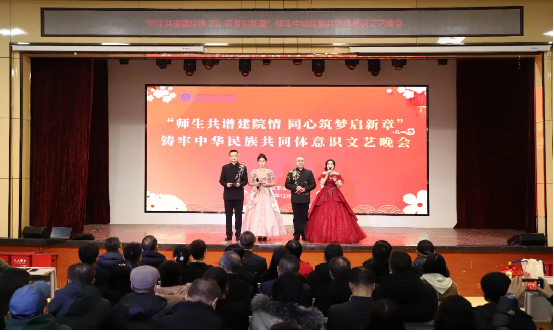 时光荏苒,岁月如梭,在这辞旧迎新的美好时刻,12月31日下午,学院“师生共谱建院情 同心筑梦启新章”——铸牢中华民族共同体意识文艺晚会在建材校区隆重举行,学院党委副书记、院长党进,党委副书记、副院长马桂珍,党委委员、纪委书记赵玉,副院长余冬贞,及高新区(新市区)委政法委、党委宣传部意识形态和审读工作办公室,高新区(新市区)维稳指挥中心、银川路街道党工委、杭州路街道、杭州路派出所、上八家户社区、西八家户社区等有关领导出席,600余名师生参加了活动。 晚会由舞蹈、朗诵、小品、舞台剧、手势舞、歌曲(独唱)、情景舞蹈、舞蹈串烧等14个节目组成,200余名教师和30余名学生同台演出,多种艺术展现形式轮番上演,融合中华优秀传统文化与现代文化,充分展示了开元官网丰富多彩的校园文化生活,营造出“以美育人、以文化人”的浓厚氛围,为观众带来一场视听盛宴。