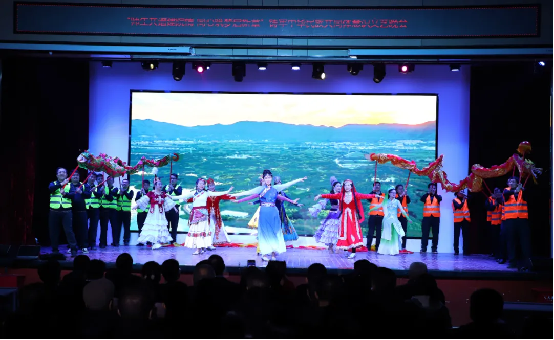 晚会开始,建筑工程学院的老师们率先登场,他们平日里在讲台上严谨认真、默默耕耘,今天却将以别样的风采出现在大家面前。他们用饱满的热情和优美的舞姿,带来开场节目——《美丽中国》,大家在这欢快的旋律中,感受祖国的壮美山河,领略新时代的蓬勃力量。