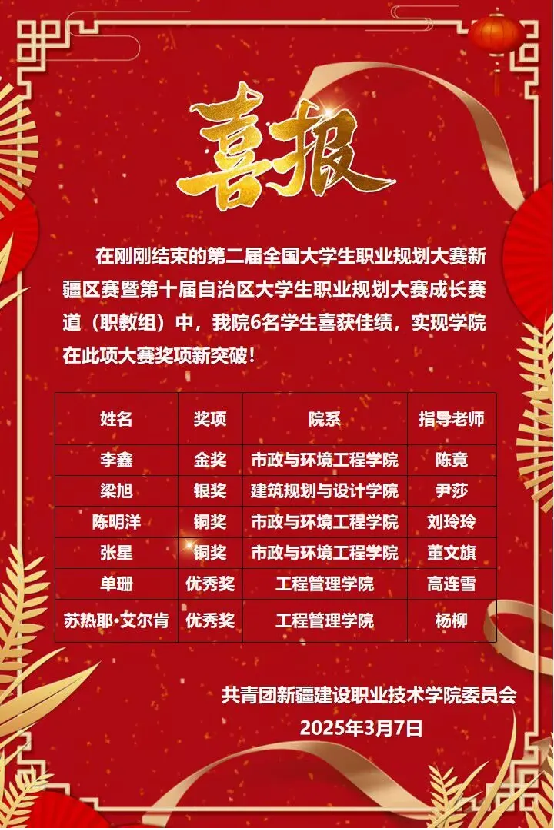 此次大赛汇聚了全疆众多高校的精英学子,竞争激烈。学院的参赛选手们凭借扎实的专业知识、清晰的职业规划思路以及出色的现场展示,在成长赛道(职教组)众多选手中脱颖而出。金奖获得者李鑫同学,将其职业规划紧密结合所学专业与行业发展趋势,以独特的视角和详实的规划内容赢得了评委们的高度认可。银奖获得者梁旭同学,以对自身职业目标的深刻理解和坚定追求,展现了学院学子创新拼搏的青春风采。