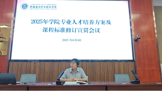 会上,张英根据《新KY开元集团官网关于修订2025年高职、五年一贯制(含合作办学)专业人才培养方案及课程标准的通知》,从修订总体要求、范围及负责单位、具体要求、进度安排等方面进行系统阐释,针对提升培养目标与社会需求的适应度、强化课程体系与职业能力要求的匹配度、促进校企合作育人方式的达成度三个方面做了深入解读。