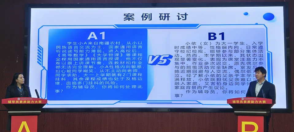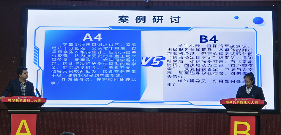 案例研讨环节,五组参赛选手以“我提问,你回答”的方式展开比拼。AB两位选手围绕案例,深入剖析、精准阐述。面对评委提问,选手们沉着应赛、从容作答,充分展现出了扎实的理论功底、缜密的逻辑思维与解决实际问题的综合能力。